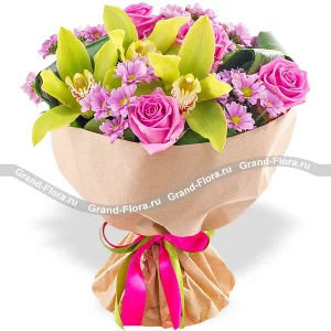 Летняя свежесть - букет из орхидей, хризантем и роз