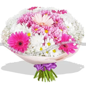 Пёстрые узоры - букет из кустовой хризантемы и альстромерии