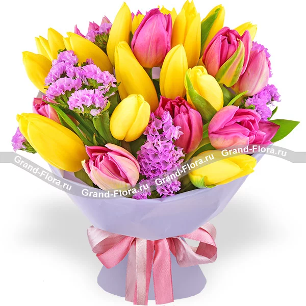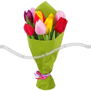 Весенняя соната - букет из разноцветных тюльпанов