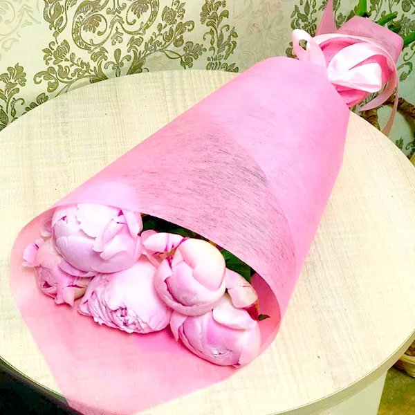 45 пионов: пионы сиреневые - 45 шт., упаковка, лента.